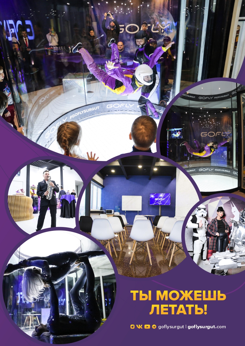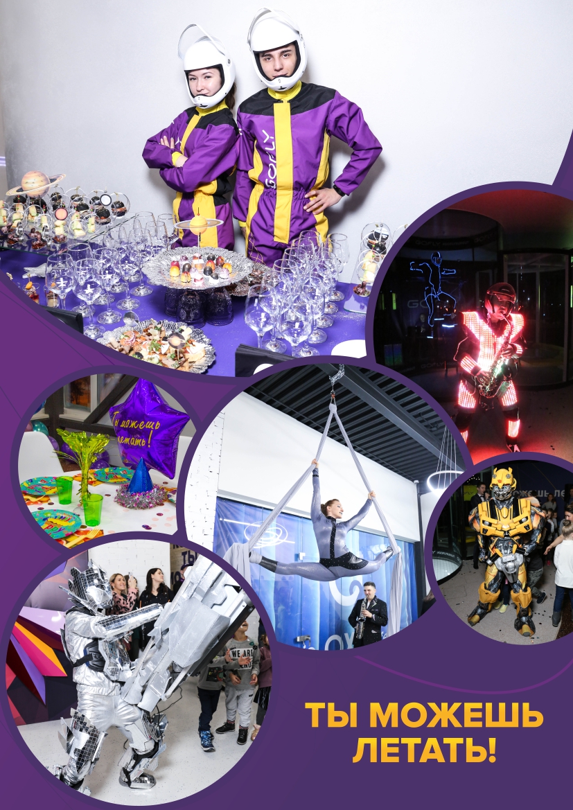 Семейное торжество может стать интересным и красочным. Мы рады предложить вам услуги по организации уникального праздника. Забудьте скуку! Аэрокомплекс GOFLY прогонит грусть и хандру в любое время года! Вам больше не надо тратить много денег, заказывая артистов и фокусников, которые будут развлекать гостей. Просто приезжайте в аэротрубу – всё остальное мы возьмём на себя.